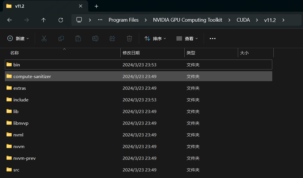 然后找到你刚才所选择的CUDA下载路径,我的是C:\Program Files\NVIDIA GPU Computing Toolkit\CUDA\v11.2